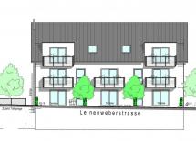 Projektierung von 16 Wohnungen in einer Anliegerstrasse im alten Ortskern von Möhringen. Es entstehen zwei 8-Familienhäuser, 14 TG-Plätze sowie 2 Außenstellplätze.